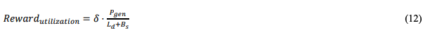 Rewards: The reward function guides the RL agent toward optimizing its policy. Reward the agent for maximizing the proportion of solar energy used directly by the grid or stored for future use. This can be obtained by equation 12.