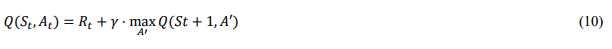 where π(ππ‘ , π΄π‘) represents the estimated value of acting π΄π‘ in state ππ‘ . The discount factor πΎ determines the importance of future rewards and max π΄β² π(ππ‘ + 1, π΄β²) captures the maximum expected reward for the next state. This iterative update ensures that the agent continuously refines its policy to maximize long-term rewards.