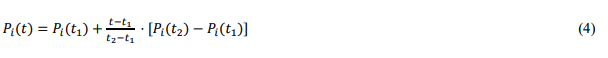 Missing sensor readings are filled in using interpolation or predictive models. For linear interpolation, missing values are calculated as in equation 4.