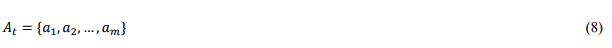 The Reinforcement Learning (RL) agent decides resource management actions (π΄π‘ )to optimize agricultural operations. Examples of such actions include the level of irrigation, fertilizer application, and pesticide or pest-control measures. The action space is finite and discrete; it can be represented in equation 8.