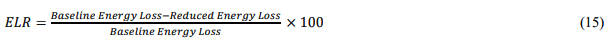 Energy Loss Reduction (ELR) measures a system's ability to minimize energy losses while operating. It is usually given in percentage and calculated using equation 15.