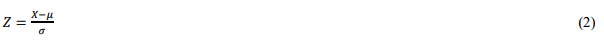 where 𝑋 Original data value, and 𝑋𝑚𝑖𝑛,𝑋𝑚𝑎𝑥 are the minimum and maximum values of the feature, μ is the data set's average, 𝜎 is the standard deviation, and 𝐷𝑠𝑒𝑔(𝑡) is the segmented dataset at time 𝑡.