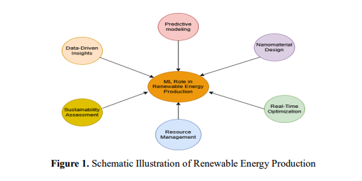 Growing demand for electricity worldwide and climate change make the switch towards renewable energy that is environmentally friendly vital [1]. Atomic nanotechnology, particularly atomic dot-based solar cells and complicated nanomaterials might improve energy conversion effectiveness. These advancements can optimise green energy systems, especially with machine learning (ML) [2]. A significant challenge is attempting to enhance quantitative and nanotechnology-based renewable energy performance while simultaneously minimising energy losses. Conventional experimentation refining is tedious and highly resource-intensive. The present research uses ML and nanoscale nanoparticles to build models for forecasting and energy efficiency improvement tactics [3]. Controlled and supervised learning are the main ML methods.