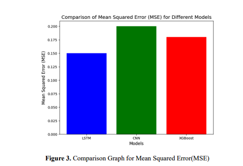 The Mean Squared Error (MSE) for three distinct ML modelsβLSTM, CNN, and XGBoostβis shown in the horizontal portion of the graph. To optimise the production of energy predictions and nanomaterial development in solar and wind power systems, a lower MSE suggests improved accuracy for prediction.