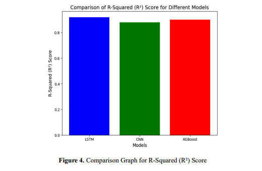 The software is supplied to create a graph with bars to compare the R-squared (RΒ²) scores obtained from three distinct statistical modelsβLSTM, CNN, and XGBoost. The measure of the extent to which an algorithm matches the information on how energy is produced is the RΒ² score, which demonstrates what percentage of the dataset's variance (such as DC_POWER and AC_POWER) is explained by the model. Models with higher RΒ² principles improve the conductivity of nanomaterials for use in solar energy systems and are better able to forecast energy outputs. Enhancing the use of quantitative nanoparticles in renewable energy systems is a top priority. Hence, this study assesses the mathematical models according to their accuracy in forecasting